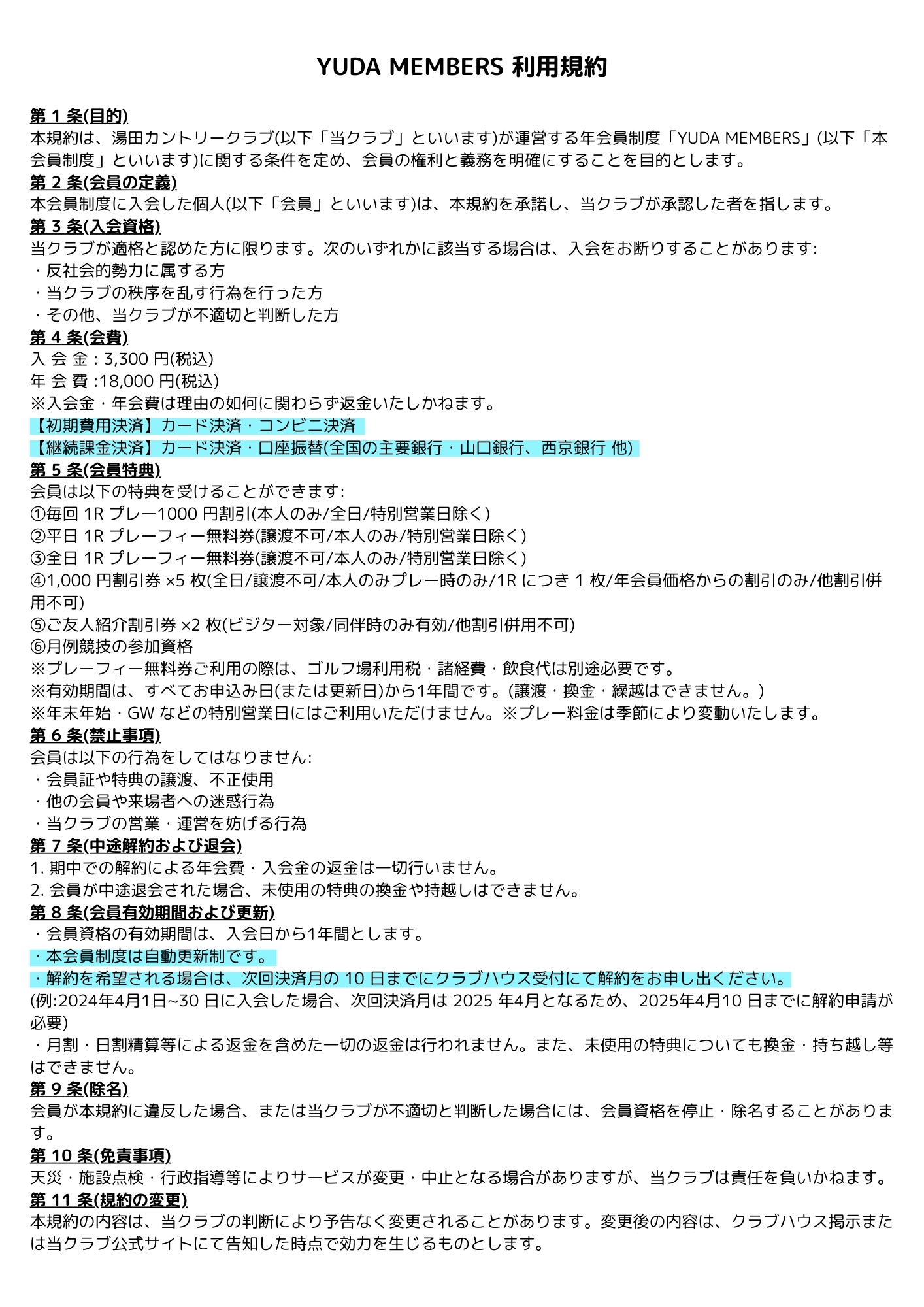 湯田カントリークラブ年会員|YUDA MEMBERS(年会員)会員募集中